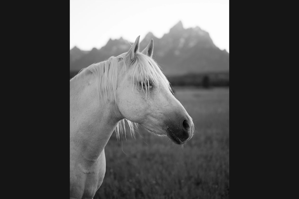 The interplay of the setting sun's rays and the jagged thrusts of Wyoming's Mount Moran created an unforgettable backdrop to this scene. The even pace of soft trotting hooves patting the earth added a poetic soundtrack to this moment of western bliss. (2024)