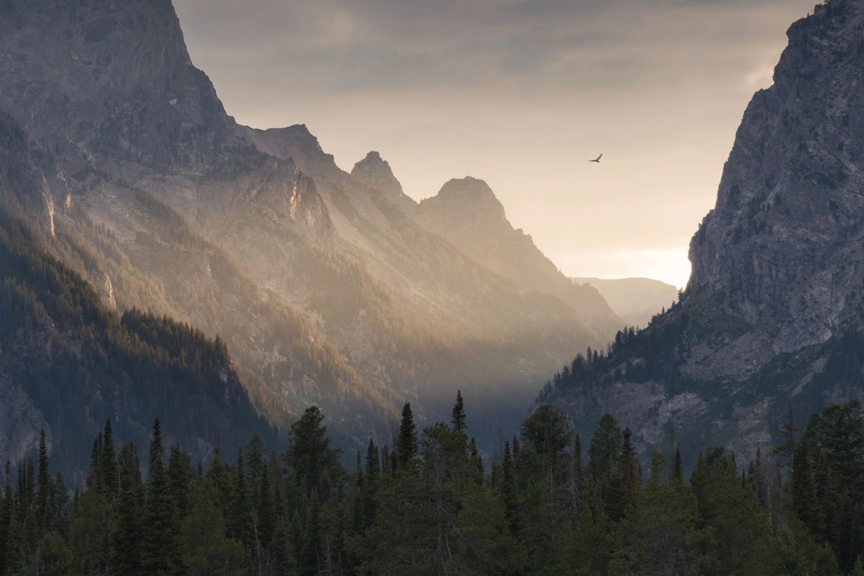 A blanket of morning fog swells and dissipates as the sun warms summer's air and paints its golden rays across the face of the iconic Tetons. (2022)